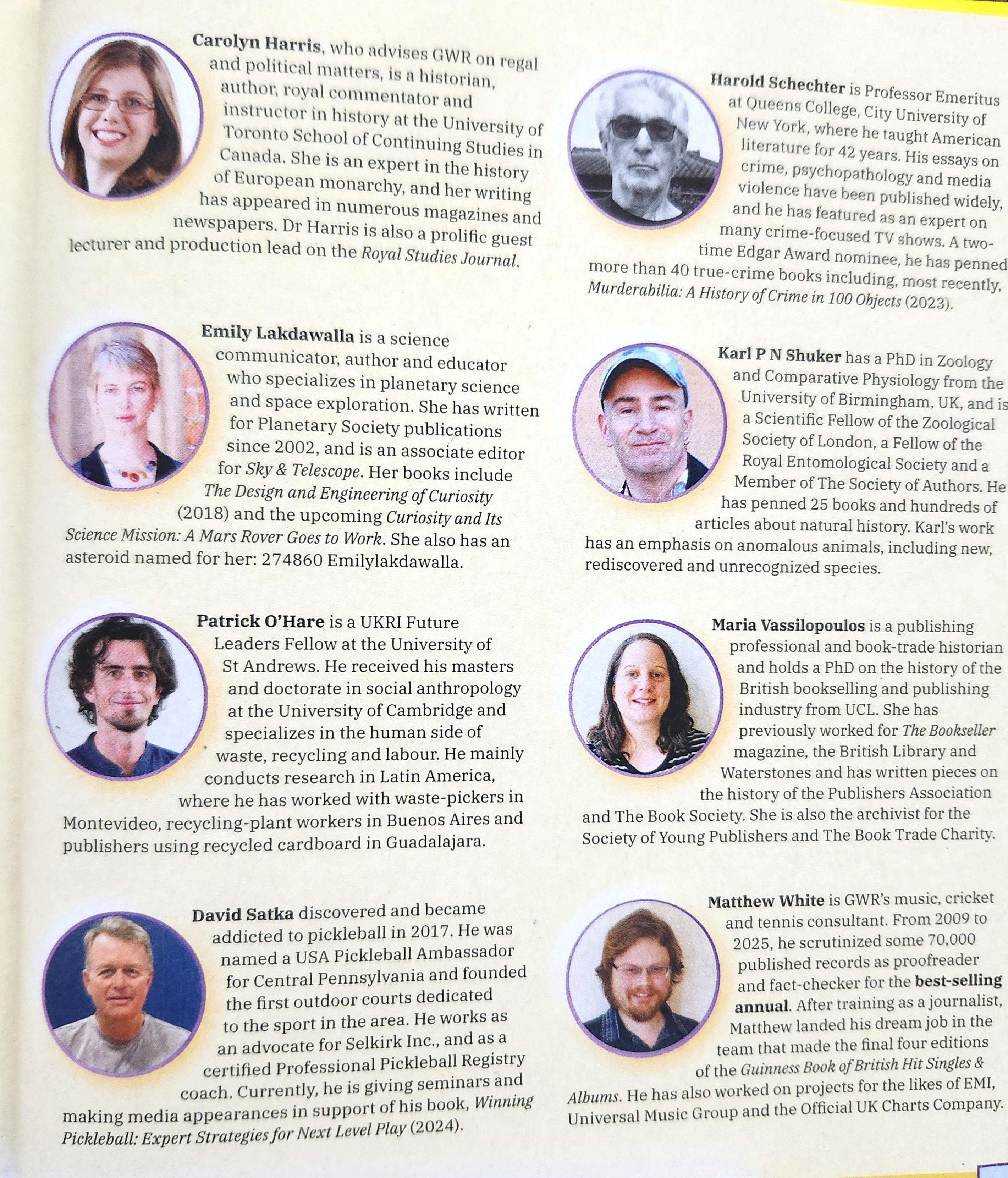 August 2025 | Guinness World Records. 2026 Edition. Consultant. Responsible for researching all historical records and creating new records for pickleball. Credited on Page 253. |